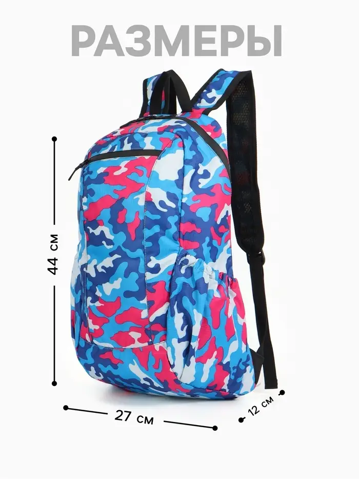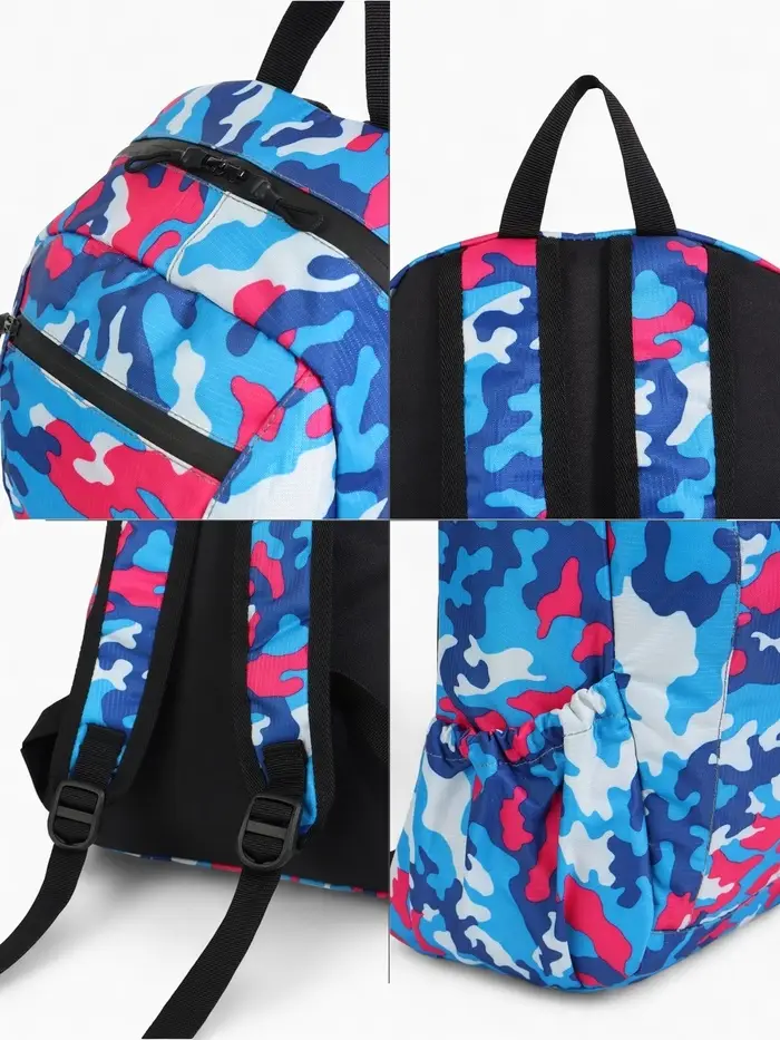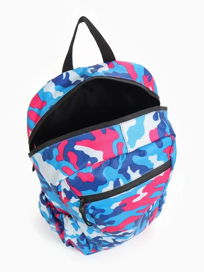 Походный рюкзак объемом 14 литров, идеально подходящий для девочек. Выполнен из стойкого к влаге текстиля, отличается ярким голубым камуфляжным рисунком. Надежная молния и две удобные лямки делают его незаменимым спутником для активного образа жизни. Идеален для учащихся 5-11 классов, универсальность и простота использования которого подчеркнут стиль и индивидуальность.