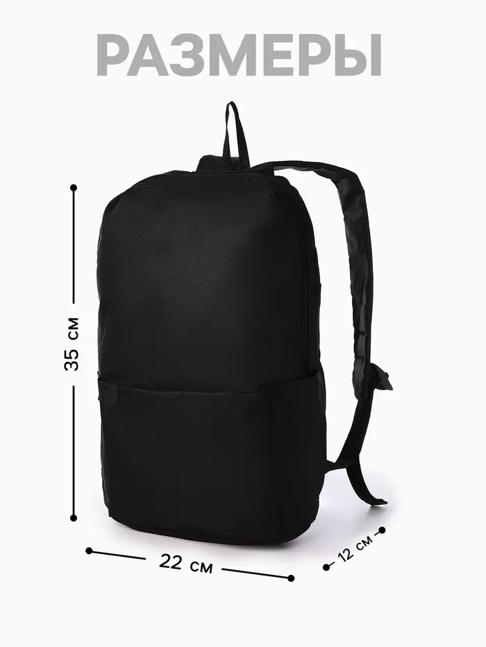 Рюкзак молодёжный на молнии, водонепроницаемый, с карманами, размер 22×12×35 см, чёрный