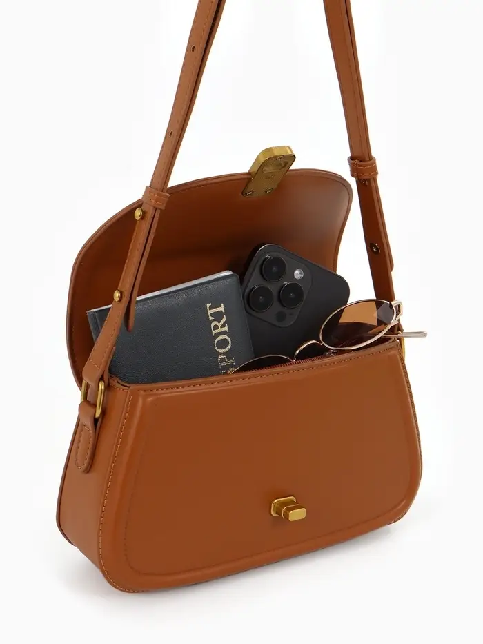 Эта коричневая сумка-мессенджер — ваш надёжный спутник для ежедневной городской жизни. Жёсткий каркас и лаконичный дизайн с багетной отделкой на клапане обеспечивают стильный и аккуратный вид в любой ситуации. Регулируемый длинный ремешок даёт свободу носить её на плече или в руке, подстраиваясь под вашу активность.