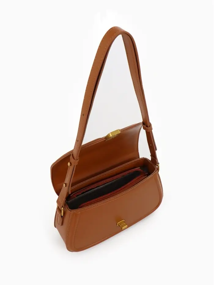 - Клапан с золотой фурнитурой надёжно закрывает основное отделение.
