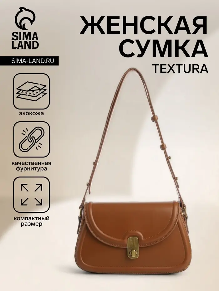 Сумка женская мессенджер TEXTURA на клапане, 23×6×13 см, коричневая