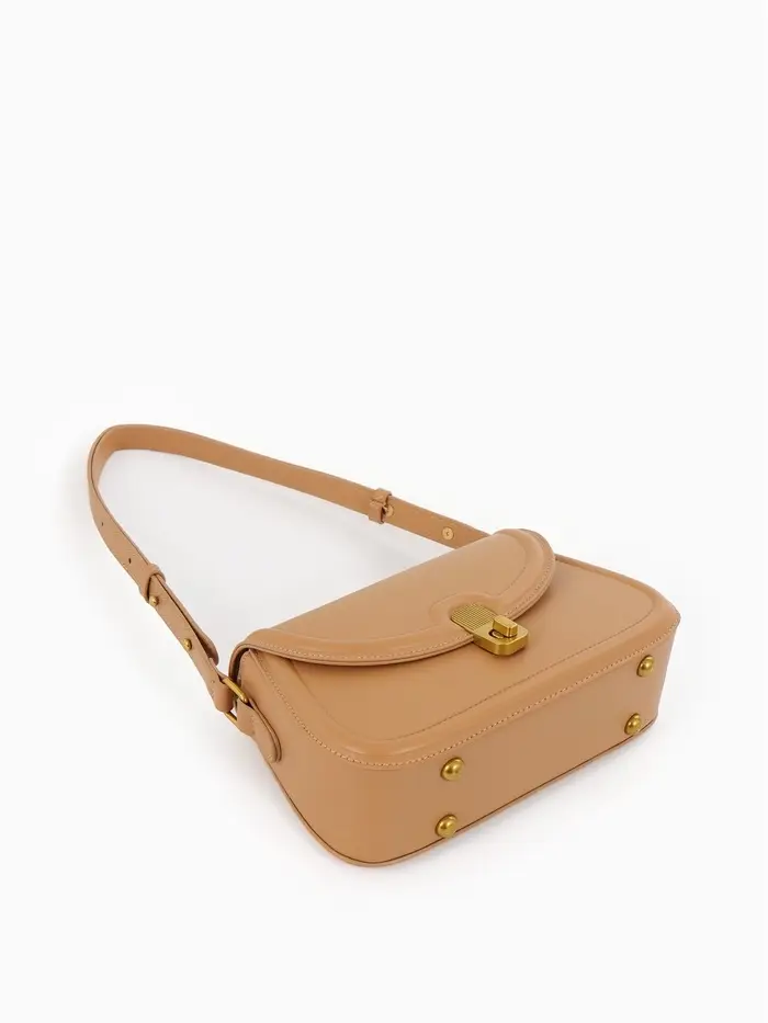 - Золотая фурнитура и багет на клапане добавляют изящные акценты.