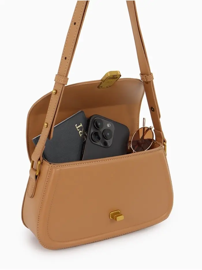Эта маленькая мессенджер-сумка из искусственной кожи — ваш надёжный спутник для ежедневной городской жизни. Её компактный, но жёсткий каркас сохраняет аккуратный силуэт, а регулируемый длинный ремешок даёт свободу: носите её через плечо или в руке, меняя образ за секунду.
