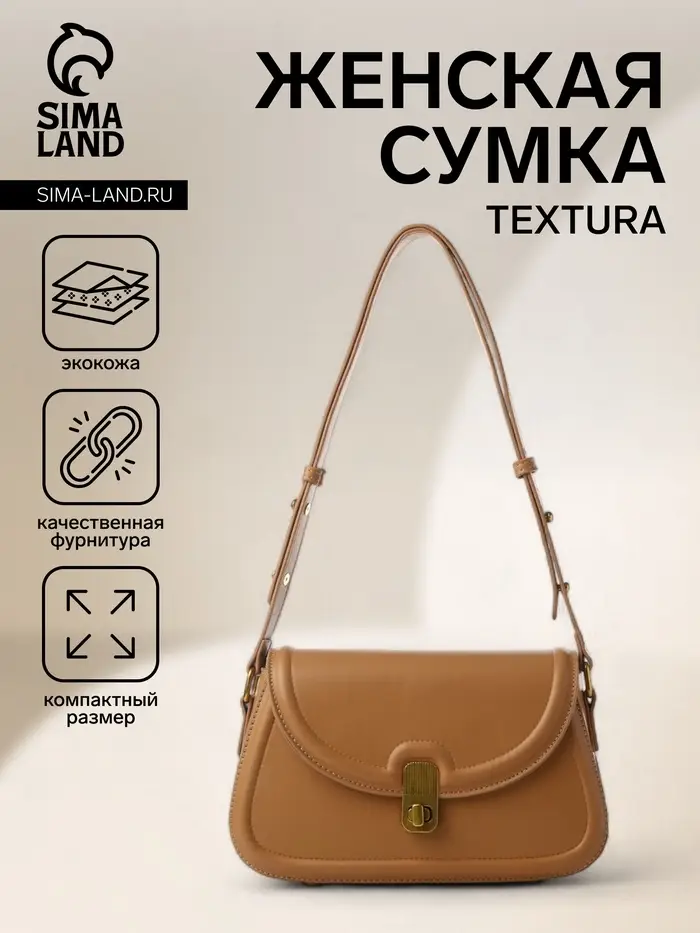 Сумка женская мессенджер TEXTURA на клапане, 23×6×13 см, тёмно-бежевая