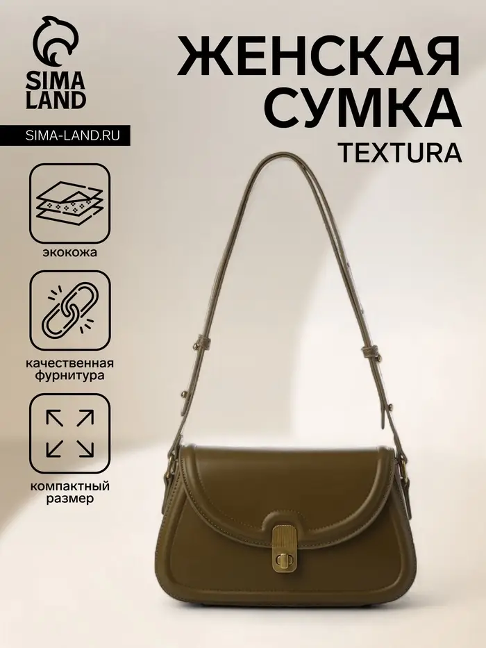 Сумка женская мессенджер TEXTURA на клапане, 23×6×13 см, хаки
