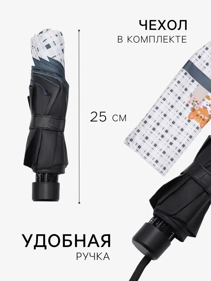 Зонт механический «Кошки», эпонж, 4 сложения, 8 спиц, R=48/56 см, d=96 см, МИКС