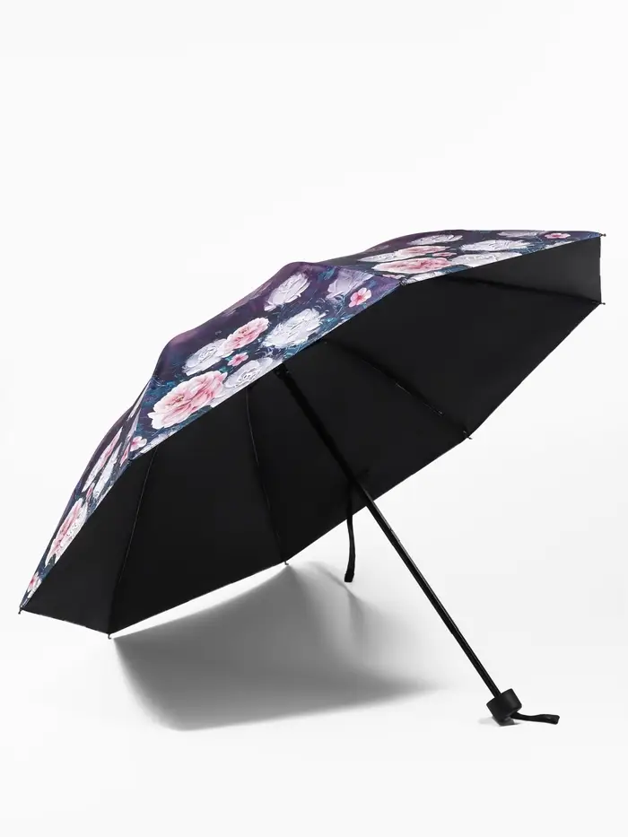 Зонт механический «Пионы», эпонж, 4 сложения, 8 спиц, R=48/56 см, d=96 см, МИКС