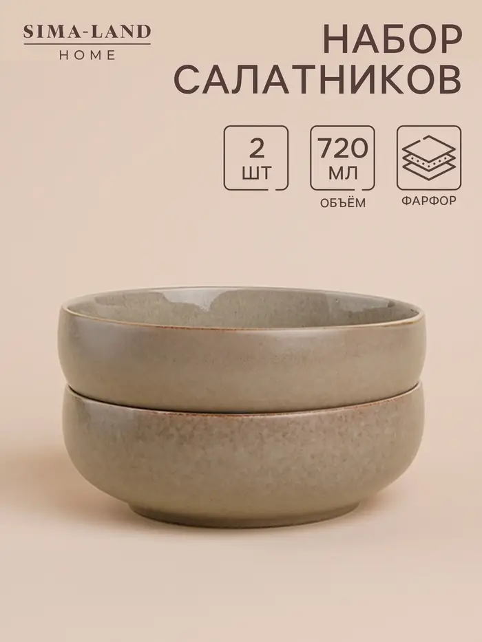 Салатники SL Home «Мольвено», 720 мл, d=16.5 см, фарфор, набор 2 шт., зелёные