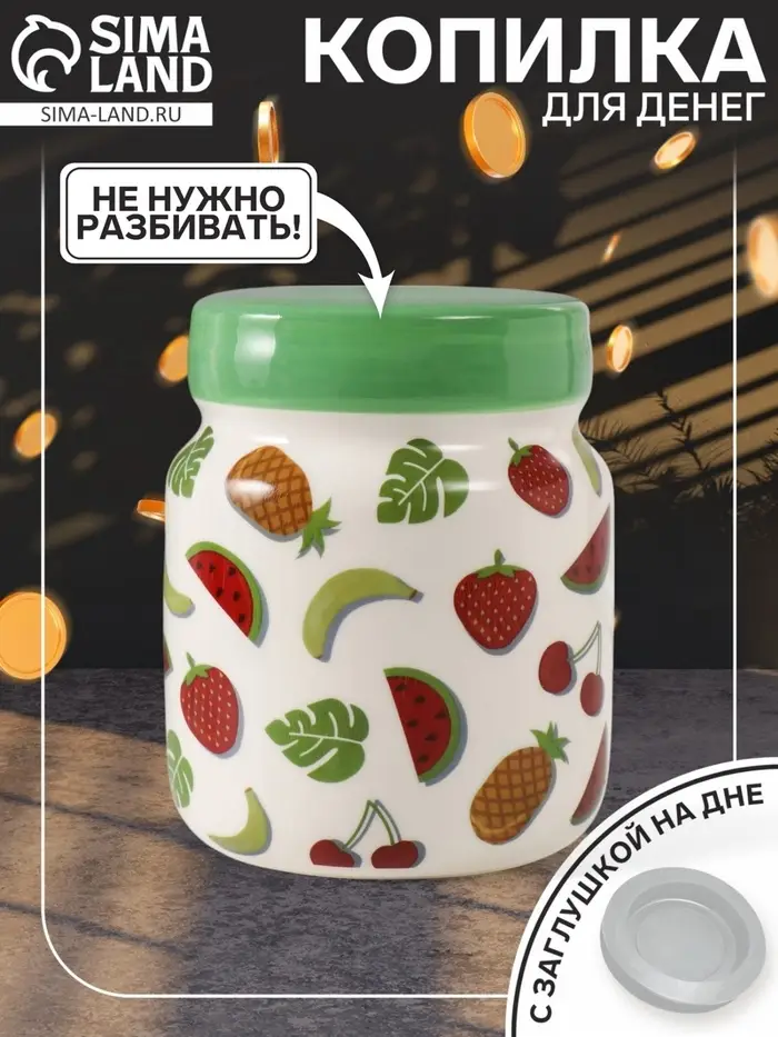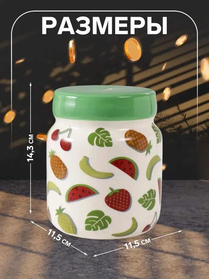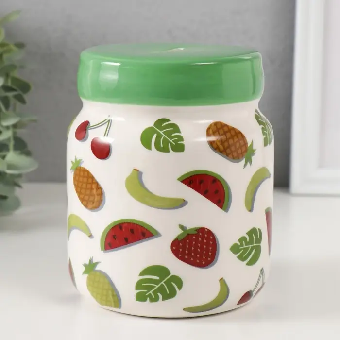 Копилка для денег «Банка с фруктиками», керамика, 11.5×11.5×14.3 см