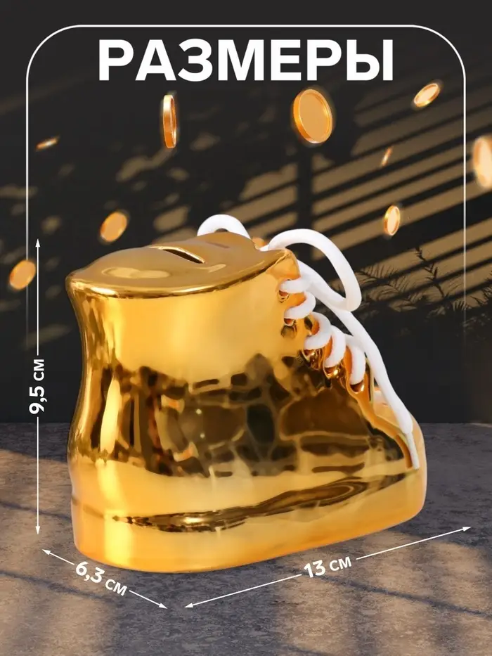 Копилка для денег «Золотой ботинок», керамика, 13×6.3×9.5 см