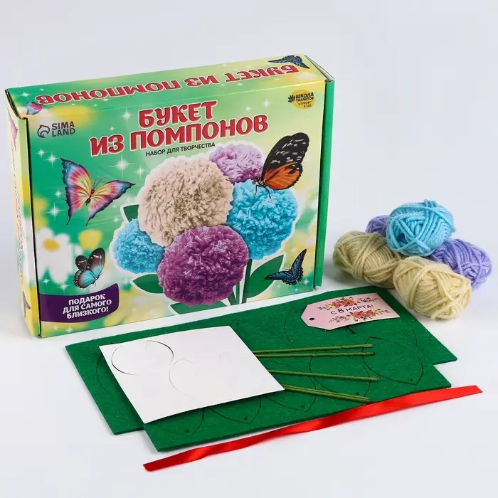 Поделка к празднику — отличный повод провести время с ребёнком и создать замечательную поделку. Детям нравится мастерить из самых невероятных материалов. Оригинальный набор для создания букета из помпонов по-настоящему увлечёт ребёнка и станет удачным подарком для талантливого малыша!
