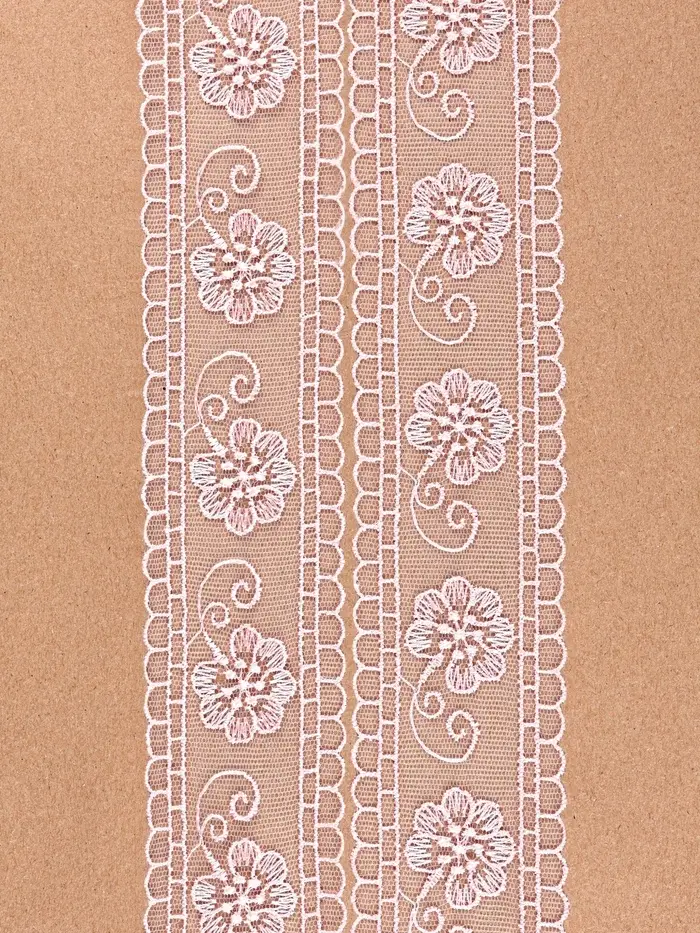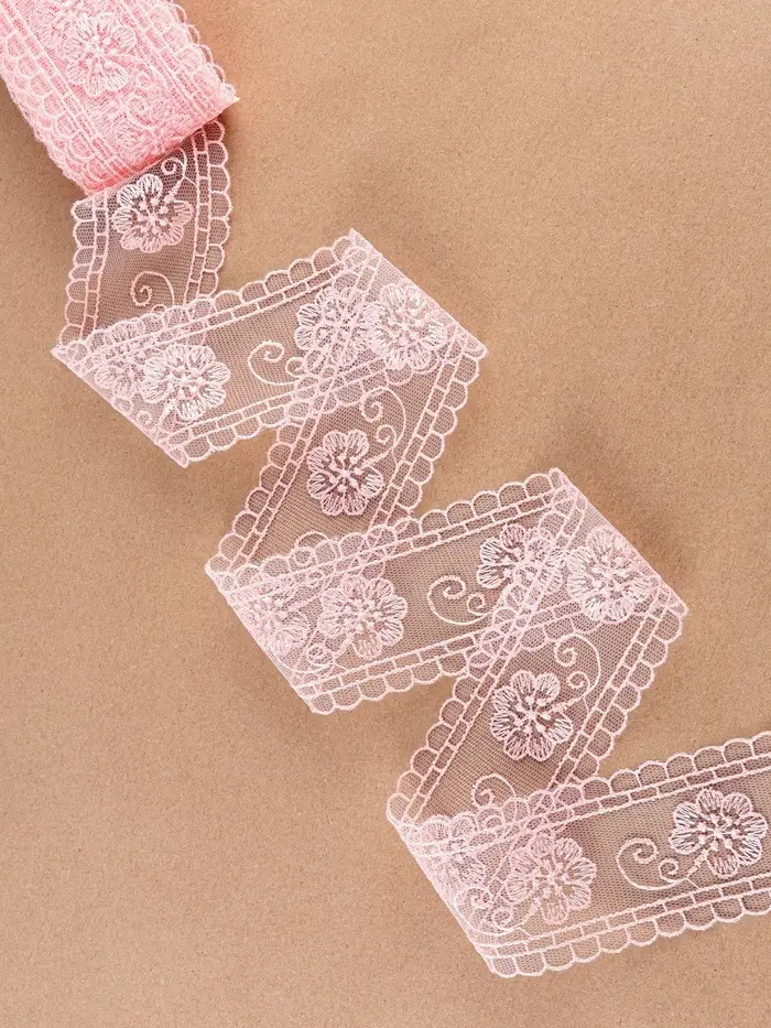 Кружево на сетке «Цветы», 50 мм, 11±1 м, нежно-розовое