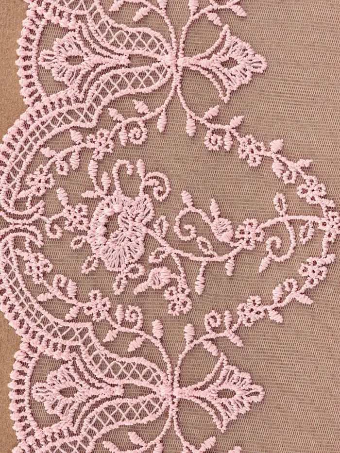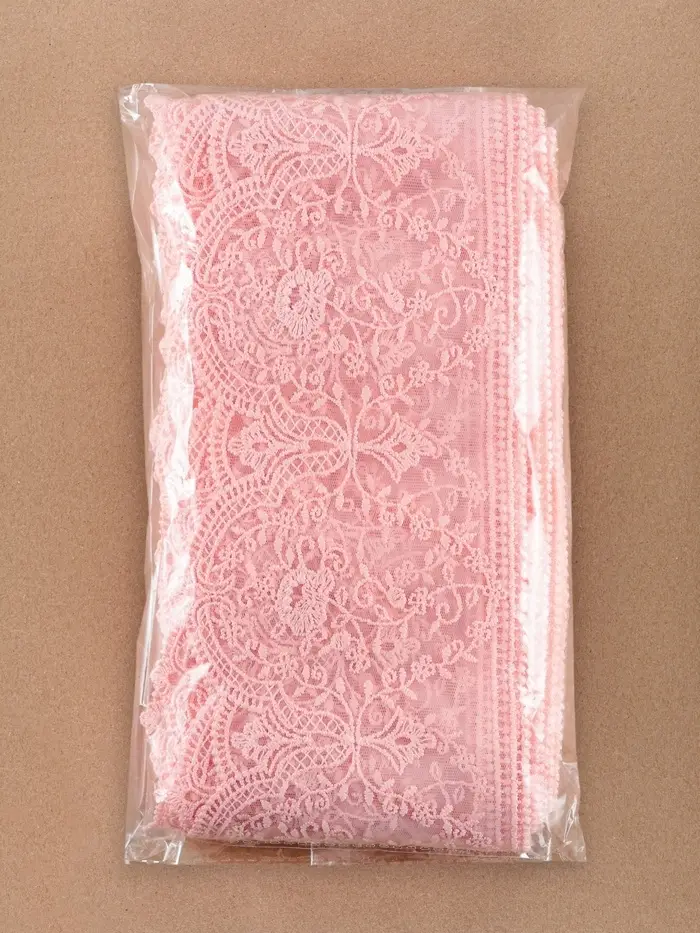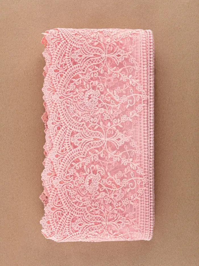Из нежно-розового кружева-сеточки получится много удивительных вещей: от лёгких интерьерных аксесуаров до роскошных свадебных нарядов. Благодаря прочной основе из полиэстера, материал замечательно держит форму и позволяет экспериментировать с различными дизайнами. Добавьте в ваш проект утончённый шарм и уникальность с помощью этого кружева.