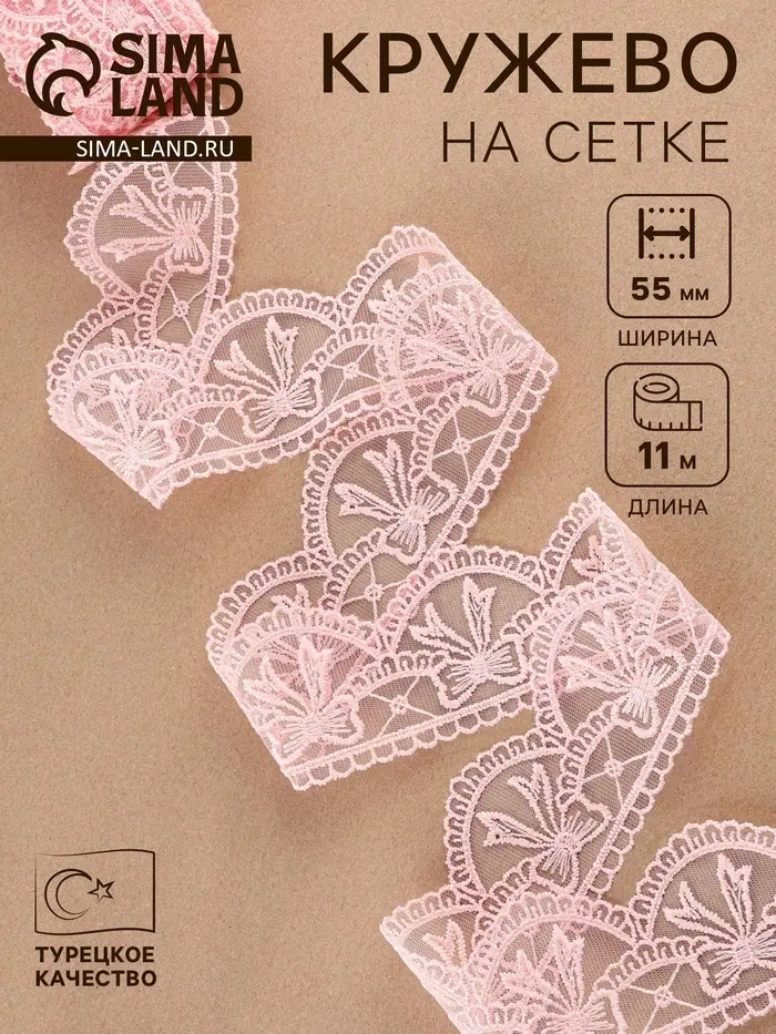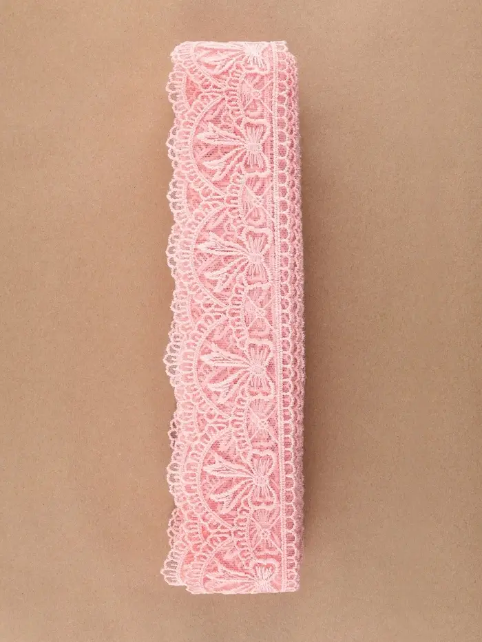 Кружево на сетке, 55 мм, 11±1 м, нежно-розовое