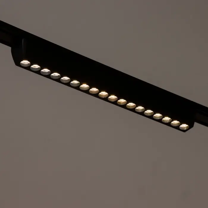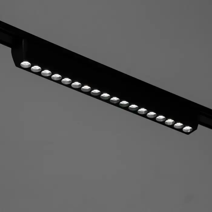 - Магнитное крепление и трёхфазная шина обеспечивают простой монтаж и возможность перемещения светильника по треку.