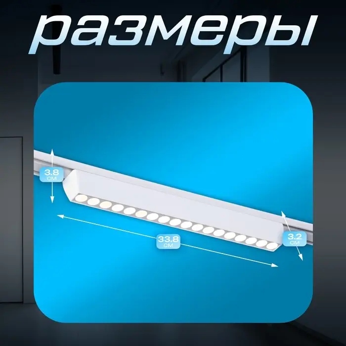 - Магнитное крепление и трёхфазная шина обеспечивают простой монтаж и возможность перемещения светильника по треку.