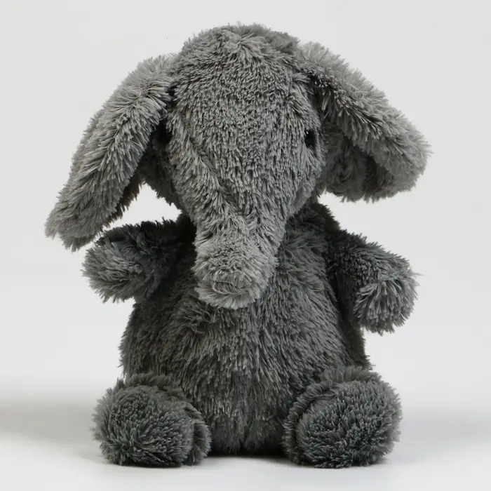 - Мягкий слонёнок размером 18 см из приятного на ощупь полиэстера подходит для обнимашек и спокойного сна. Его удобно брать с собой на прогулку или в гости.