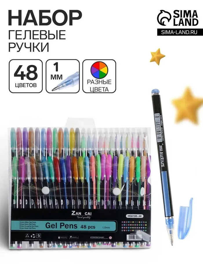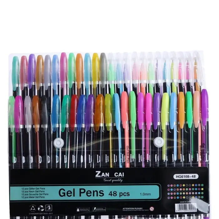 Набор гелевых ручек, 48 цветов (металлик, неоновые, пастельные, с блёстками), узел 1 мм, в блистере на кнопке