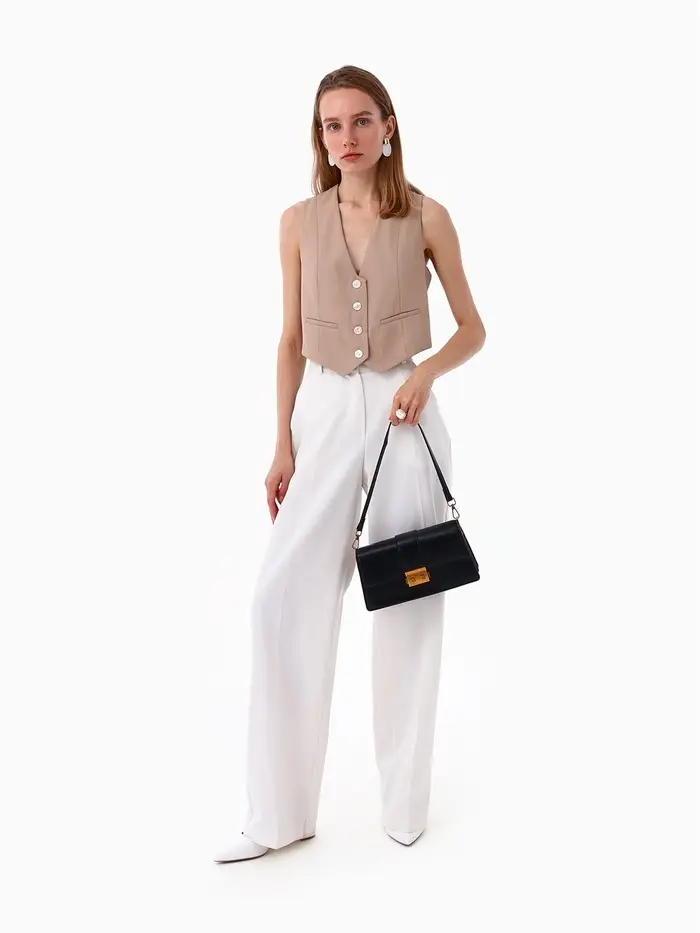 Чёрный цвет делает её универсальной для любого образа, будь то деловая встреча или прогулка по городу.