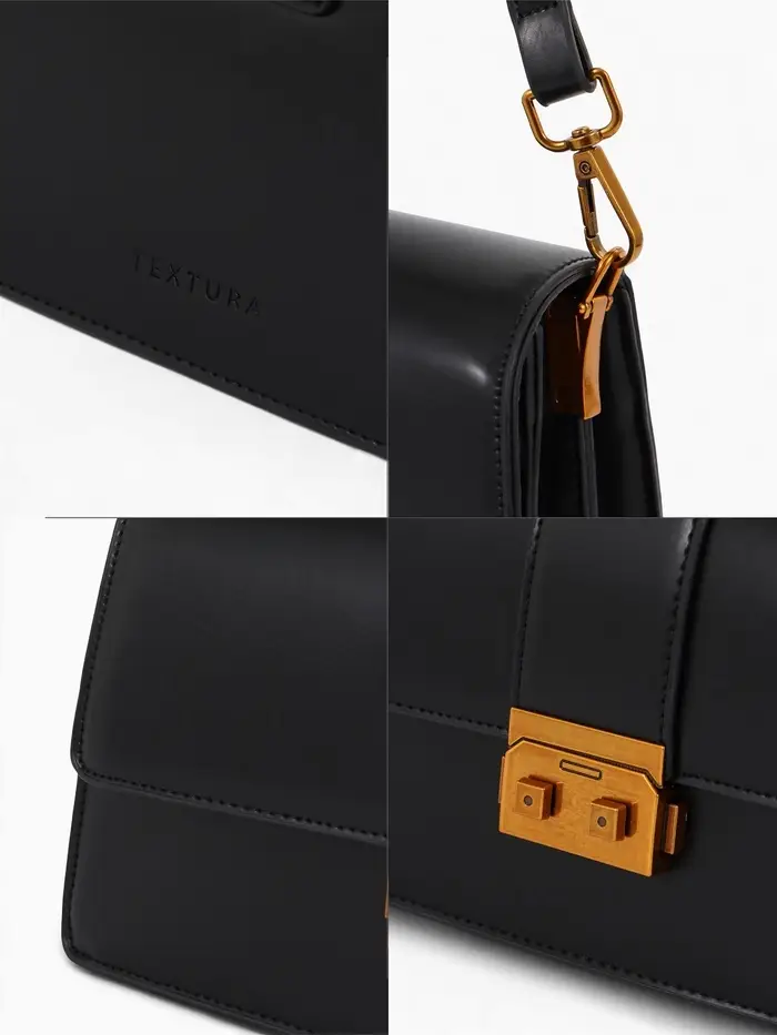 Сумка женская мессенджер TEXTURA на клапане, 26×8.5×14 см, чёрная