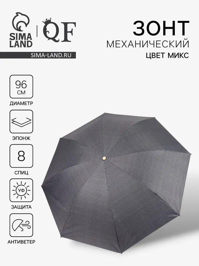 Зонт механический «Мелкая клетка», эпонж, 4 сложения, 8 спиц, R=48/55 см, d=96 см, МИКС