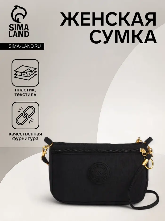 Сумка женская кросс-боди на молнии, 18×6.5×12 см, однотонная, чёрная