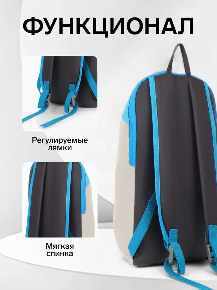 Этот бежево-голубой рюкзак создан для школьников, чей день — это движение от уроков к тренировкам и встречам с друзьями. Он вмещает всё необходимое для активного отдыха, оставаясь лёгким и удобным. Мягкая спинка и регулируемые лямки бережно поддерживают спину, даже если внутри — сменная форма и бутылка воды.