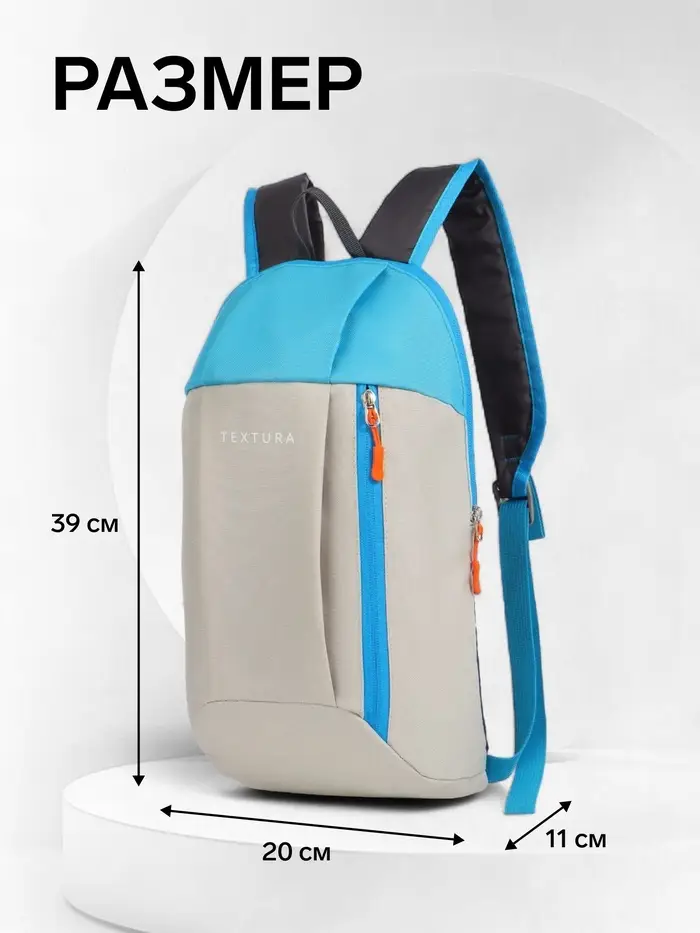 Рюкзак спортивный TEXTURA, на молнии, с карманом, размер 20×11×39 см, бежевый/голубой