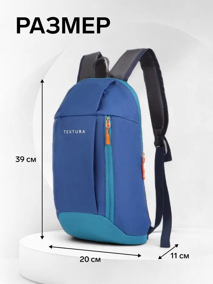 Рюкзак спортивный TEXTURA, на молнии, с карманом, размер 20×11×39 см, синий