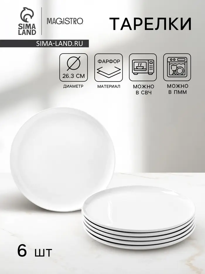 Тарелки Magistro Mien, d=26.3 см, набор 6 шт., фарфор, белые