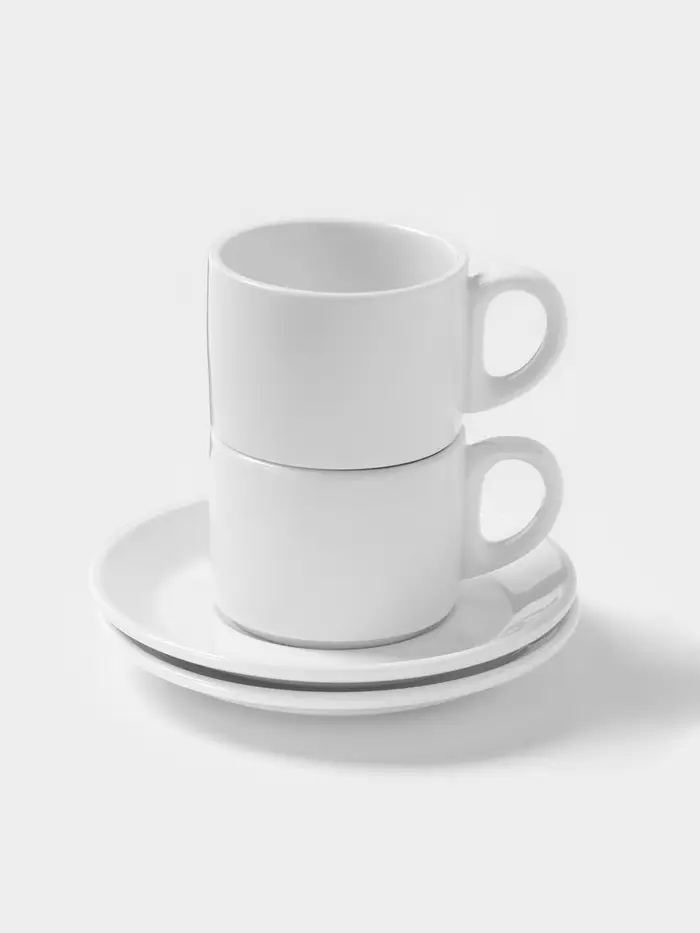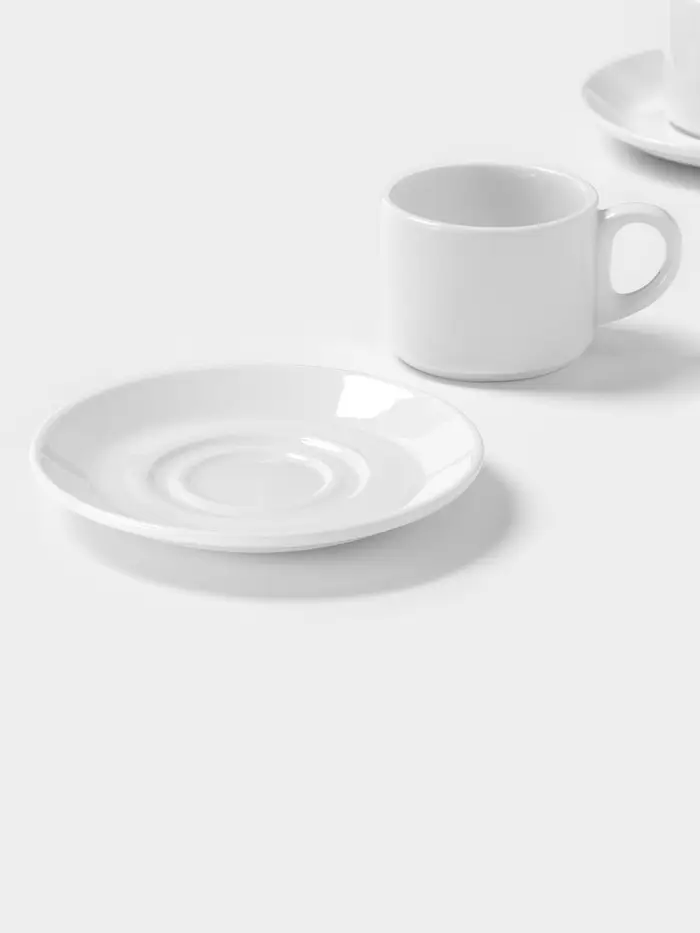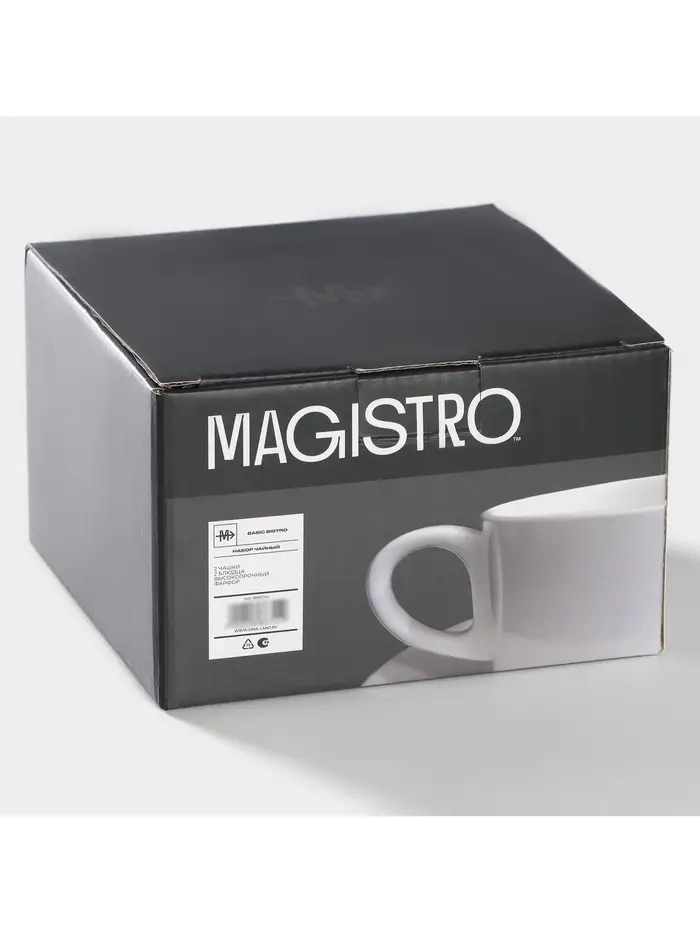 Чайный сервиз Magistro Basic bistro, 2 персоны, 4 предмета: 2 чашки 200 мл, 2 блюдца d=15 см, фарфор, белый