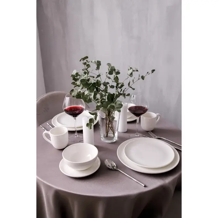 Mien - это идеальное сочетание элегантности, функциональности и качества. Белоснежная поверхность посуды с утолщёными краями придаёт сервировке классический и элегантный вид.