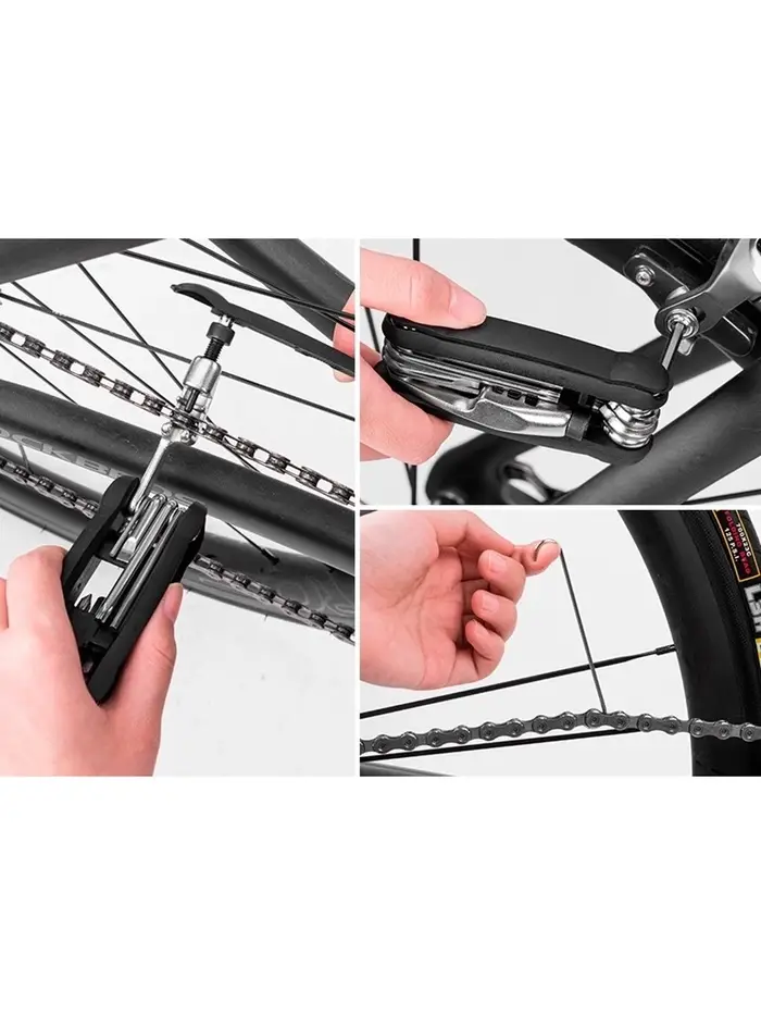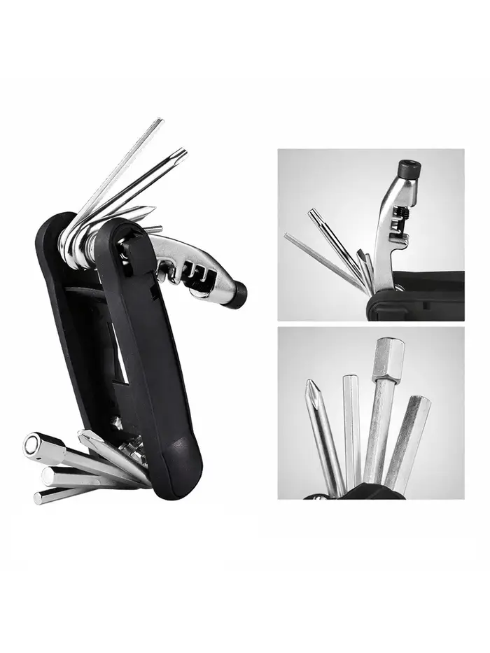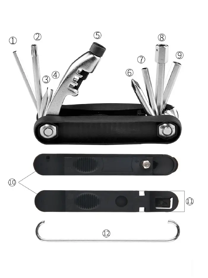 - 12 инструментов в одном – полный набор для базового обслуживания велосипеда.