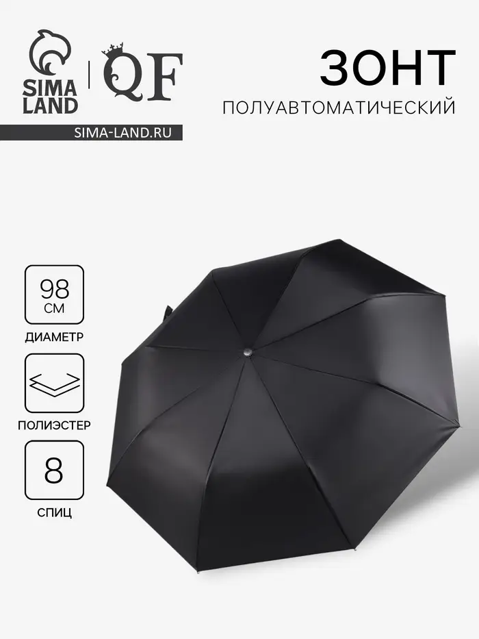 Зонт полуавтоматический «Однотон», 3 сложения, 8 спиц, R=49/57 см, d=98 см, чёрный
