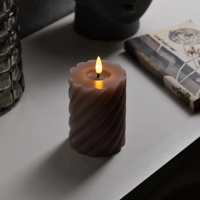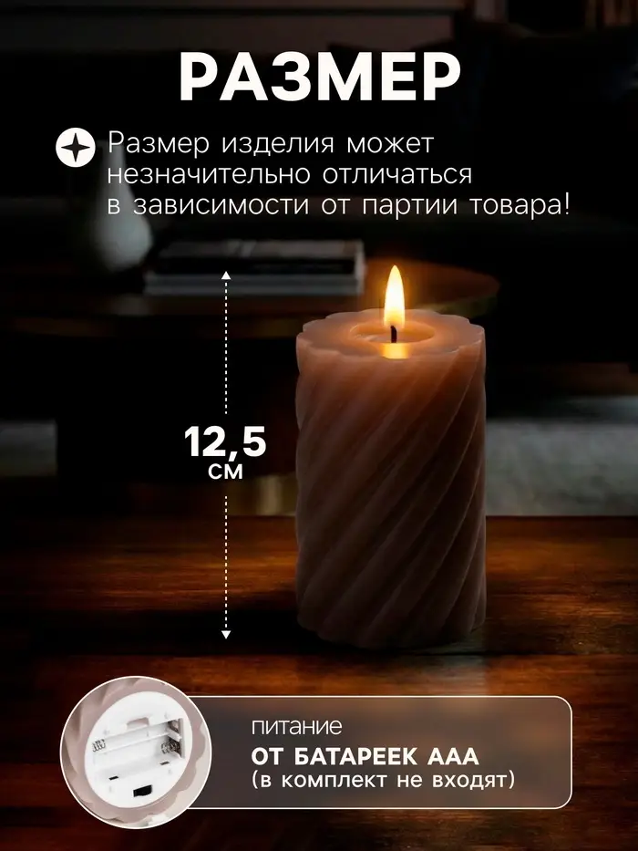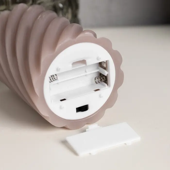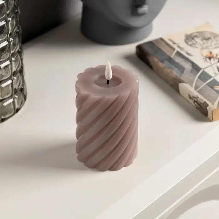 Светодиодная свеча витая лиловая, 7.5×12.5×7.5 см, пластик, воск, от батареек АААх2, свечение тёплое белое