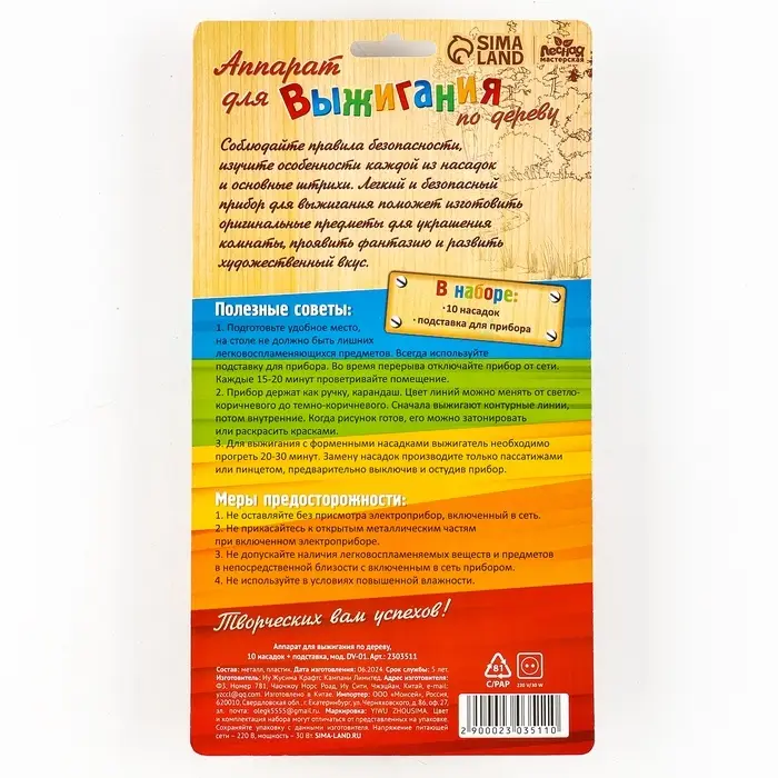Оцените удобство выжигательного прибора, который благодаря современным технологиям ещё и абсолютно безопасен. А компактная и лёгкая ручка будет удобна даже ребёнку.