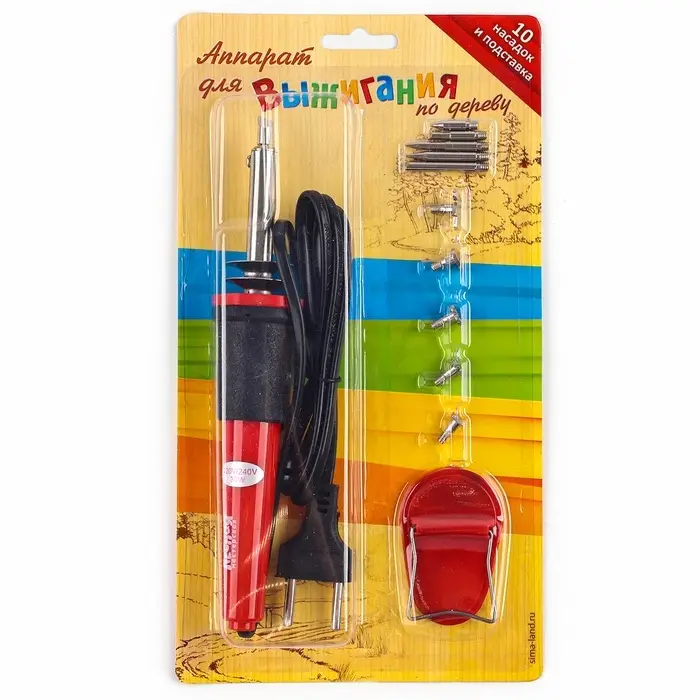 Выжигательный аппарат по дереву, набор: 10 насадок, подставка