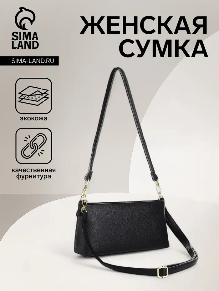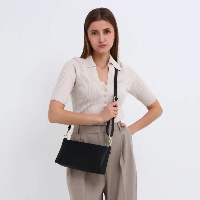 Сумка женская кросс-боди на молнии, 25.5×6.5×12.5 см, чёрная