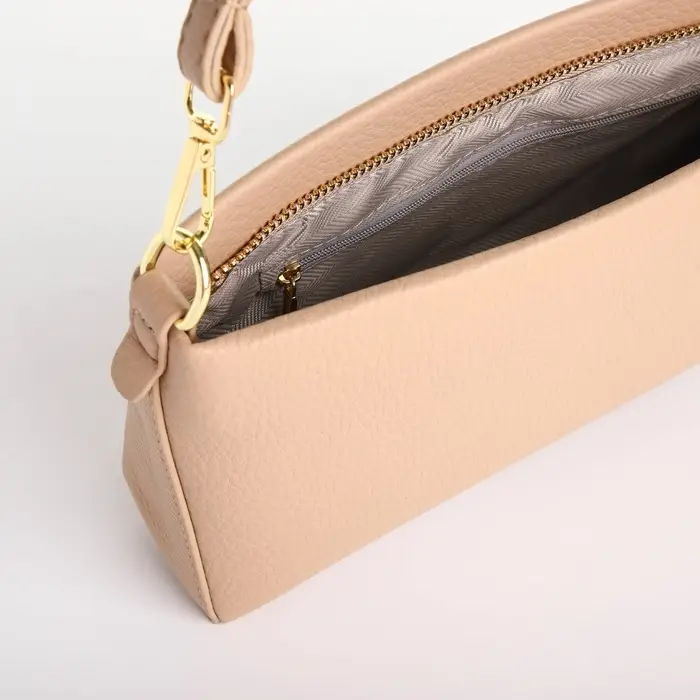Сумка женская кросс-боди на молнии, 25.5×6.5×12.5 см, бежевая