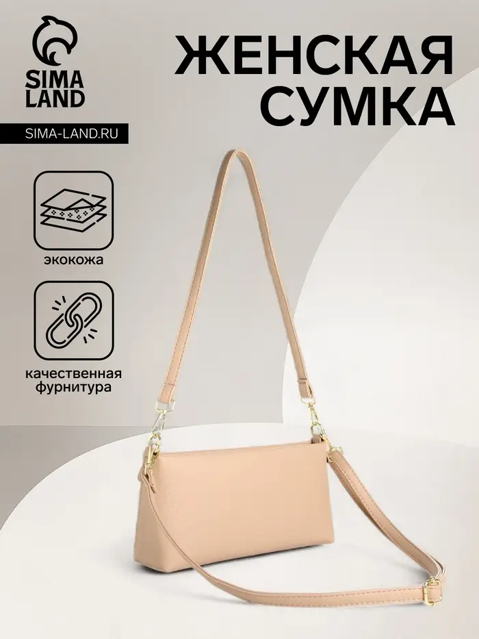 Сумка женская кросс-боди на молнии, 26×10×16 см, бежевая