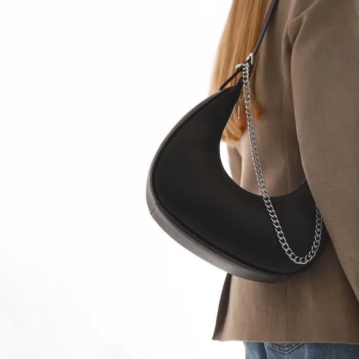 Сумка-полумесяц создана для динамичной жизни. Она сочетает в себе элегантность багета с практичностью повседневного аксессуара. Всё, что вам нужно, — это взять её с утра, чтобы чувствовать собранность и стиль до самого вечера. Это выбор для тех, кто ценит лаконичность, функциональность и вневременной дизайн.