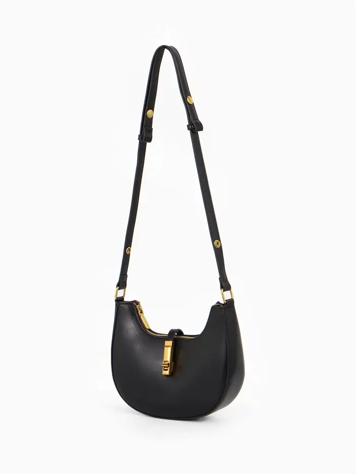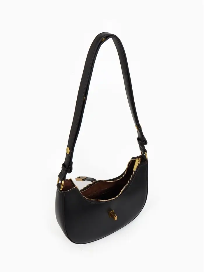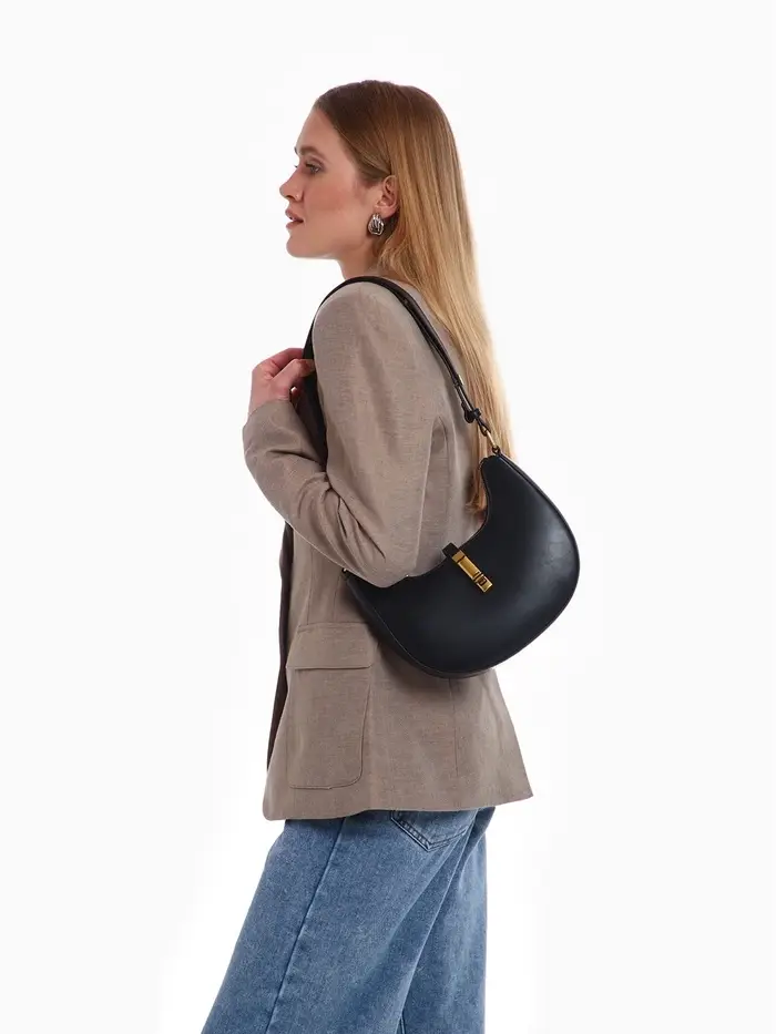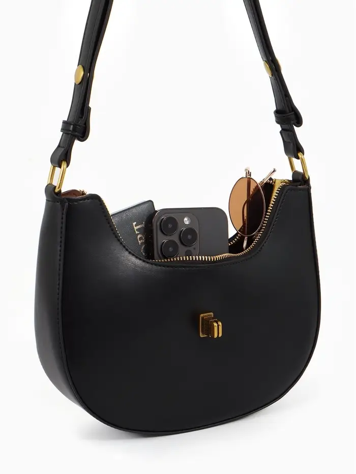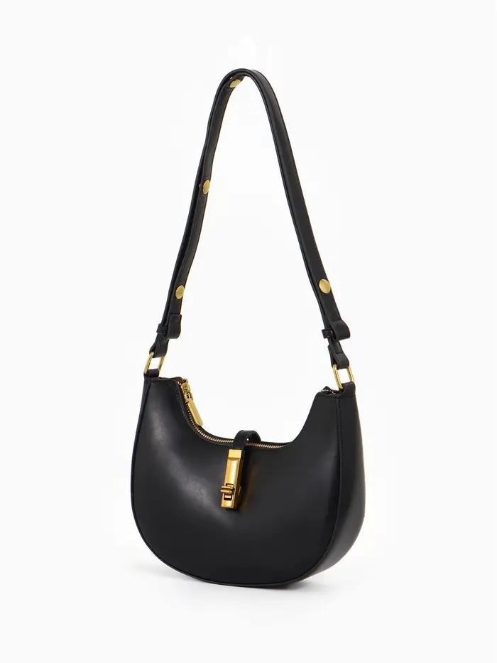 - Стильный дизайн: строгий чёрный цвет и золотая фурнитура придают сумке роскошный вид, подходящий для любого случая.