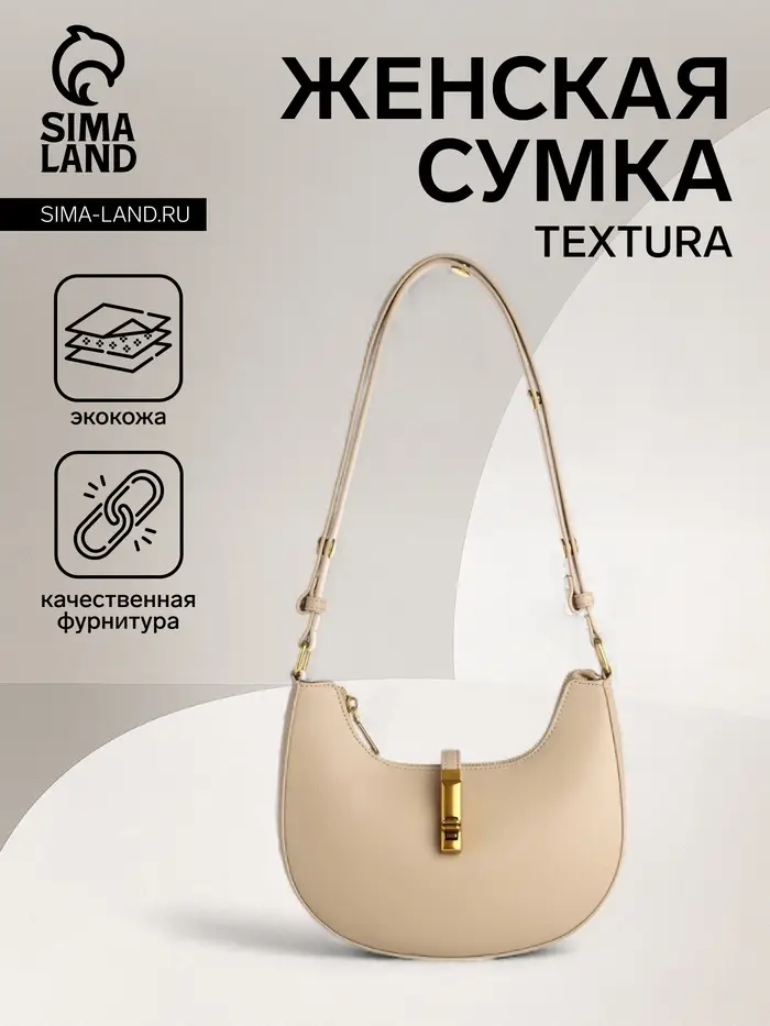 Сумка женская багет TEXTURA на молнии, 21×6×13 см, бежевая