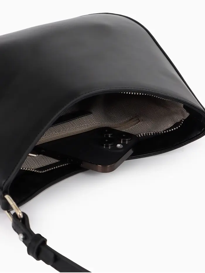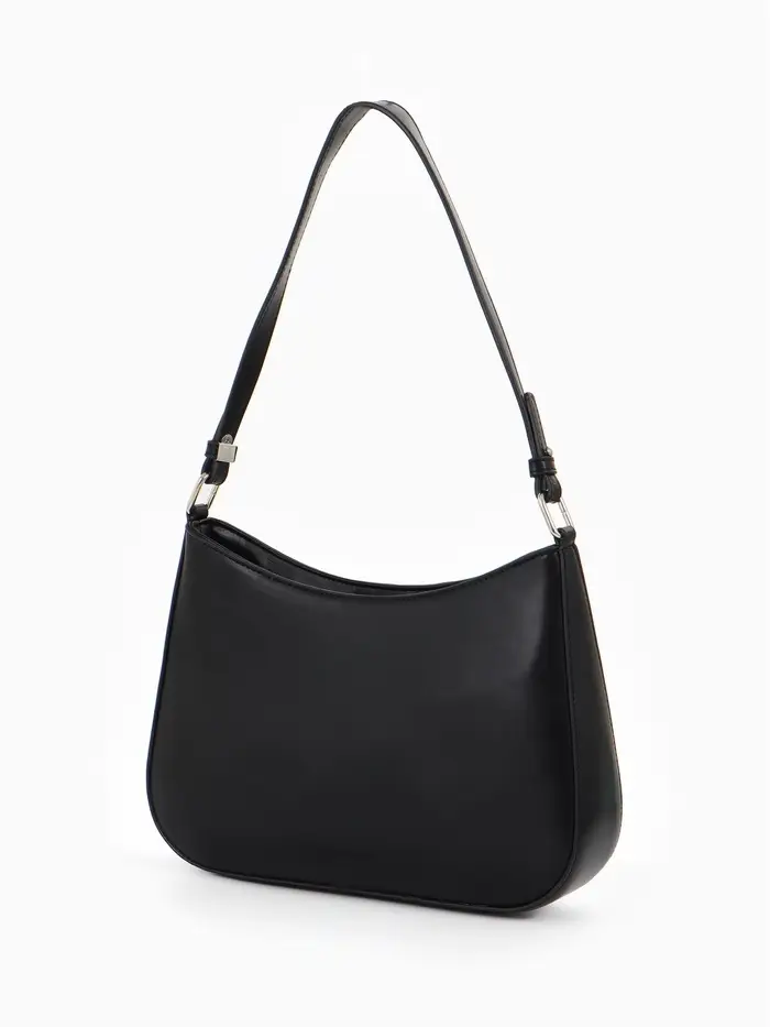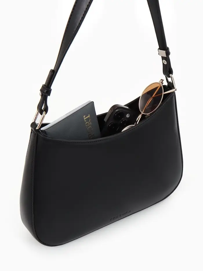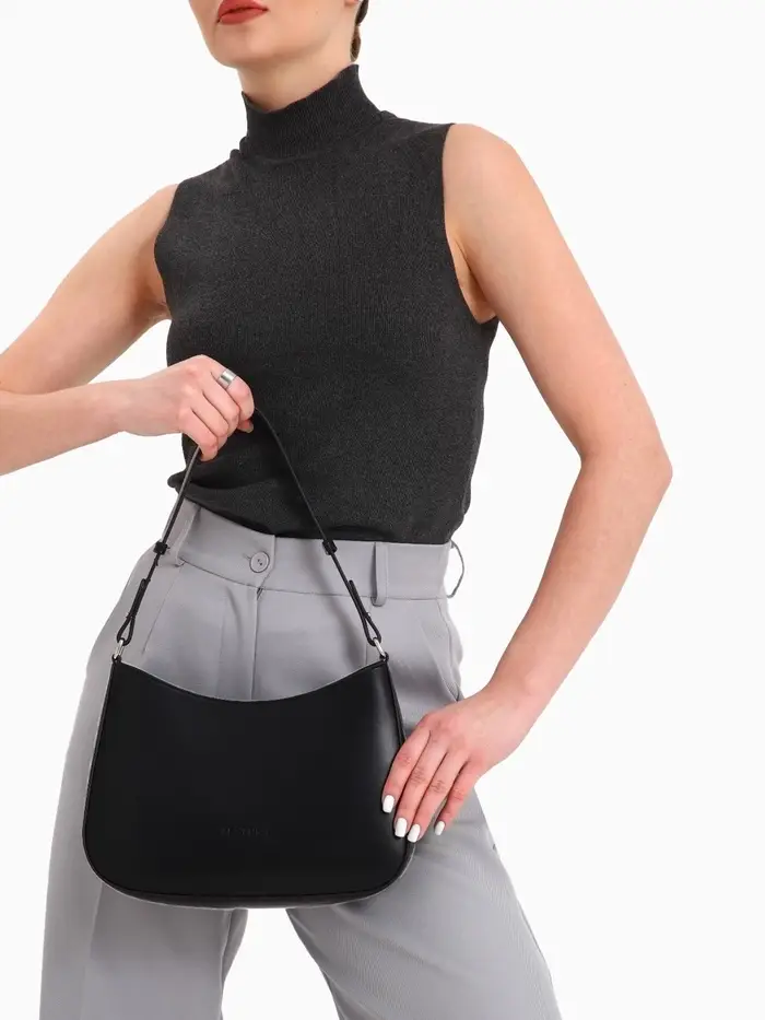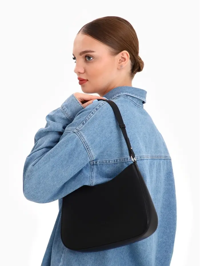 Эта черная сумка-багет — ваш идеальный спутник для города. Её лаконичный силуэт и жесткая конструкция сохраняют безупречную форму, а классический дизайн легко сочетается с любым стилем одежды. Сумка подчеркивает сдержанный вкус и организованность своей владелицы.