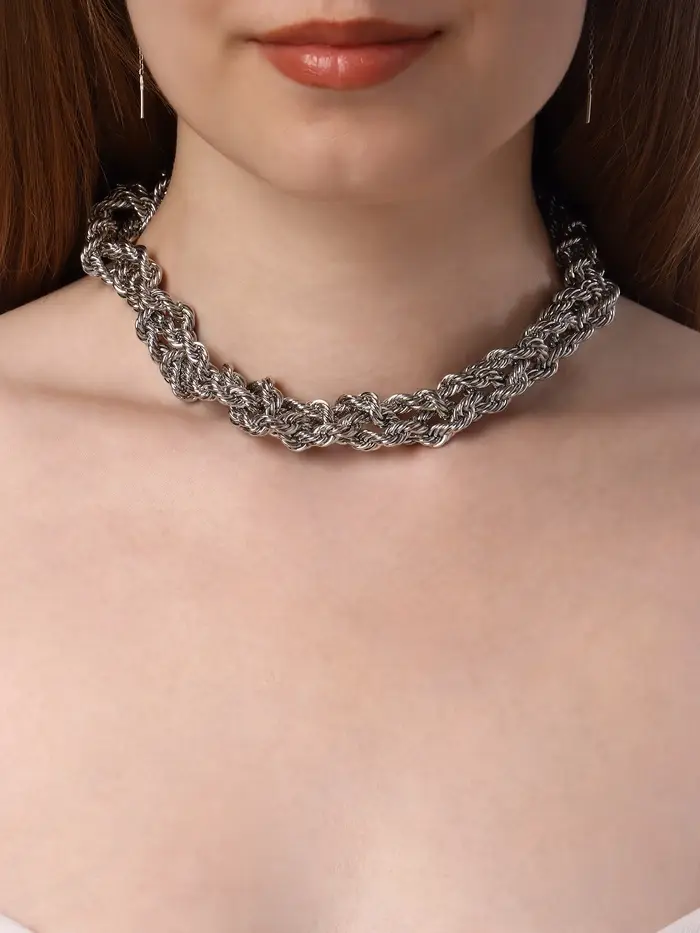 - Всегда актуально: лаконичный дизайн и чистая металлическая поверхность никогда не выходят из моды, позволяя применять колье в широком диапазоне ситуаций.