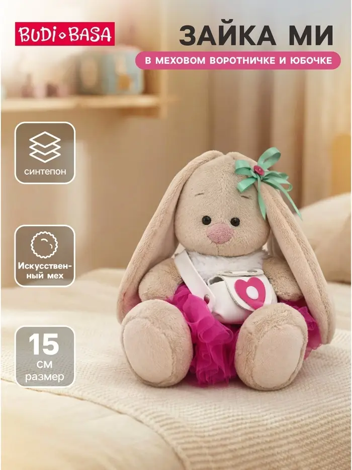 Мягкая игрушка «Зайка Ми» — очаровательная модница в меховом воротничке и юбочке. Такой подарок порадует девочку и подарит радостные эмоции. Стильная зверюшка разовьёт фантазию малышки и станет отличным компаньонам по играм.