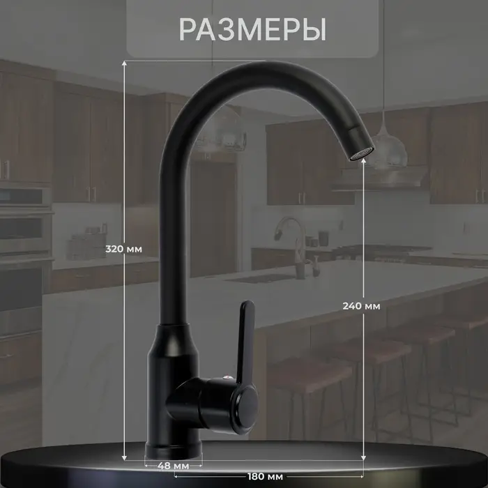 Смеситель для кухни ZEIN Z3699, однорычажный, поворотный излив высотой 26 см, черный