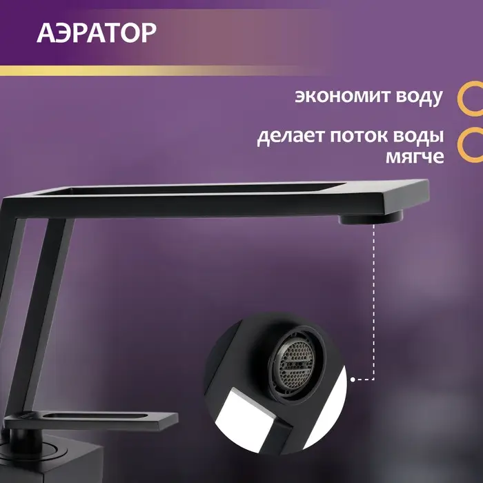 Смеситель для раковины ZEIN Z3509, поворотный излив 360°, картридж 35 мм, латунь, черный