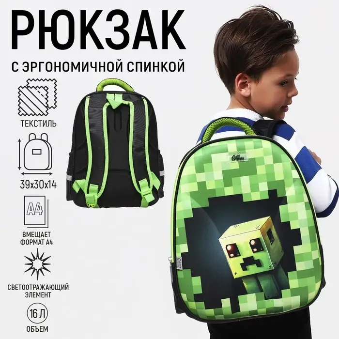 Рюкзак школьный, каркасный, 39×30×14 см «Пиксельный мир»