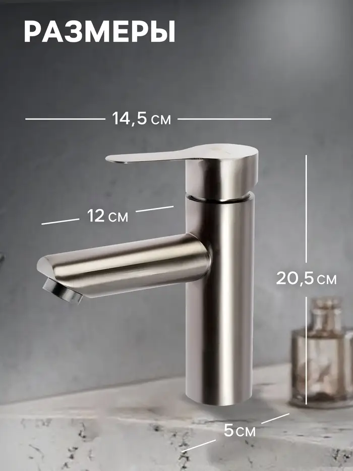Смеситель для раковины ZEIN ZS 20102, картридж керамика 35 мм, нержавеющая сталь, сатин